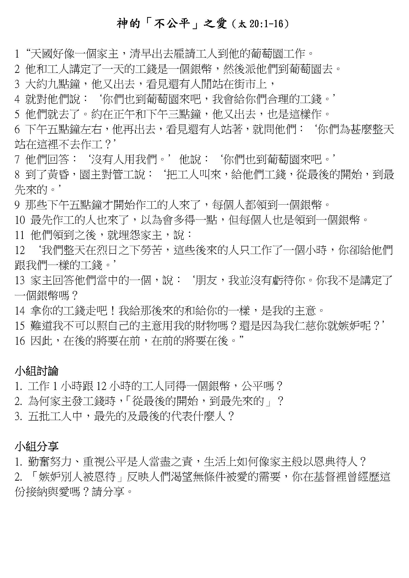 神的「不公平」之愛神的「不公平」之愛神的「不公平」之愛神的「不公平」之愛